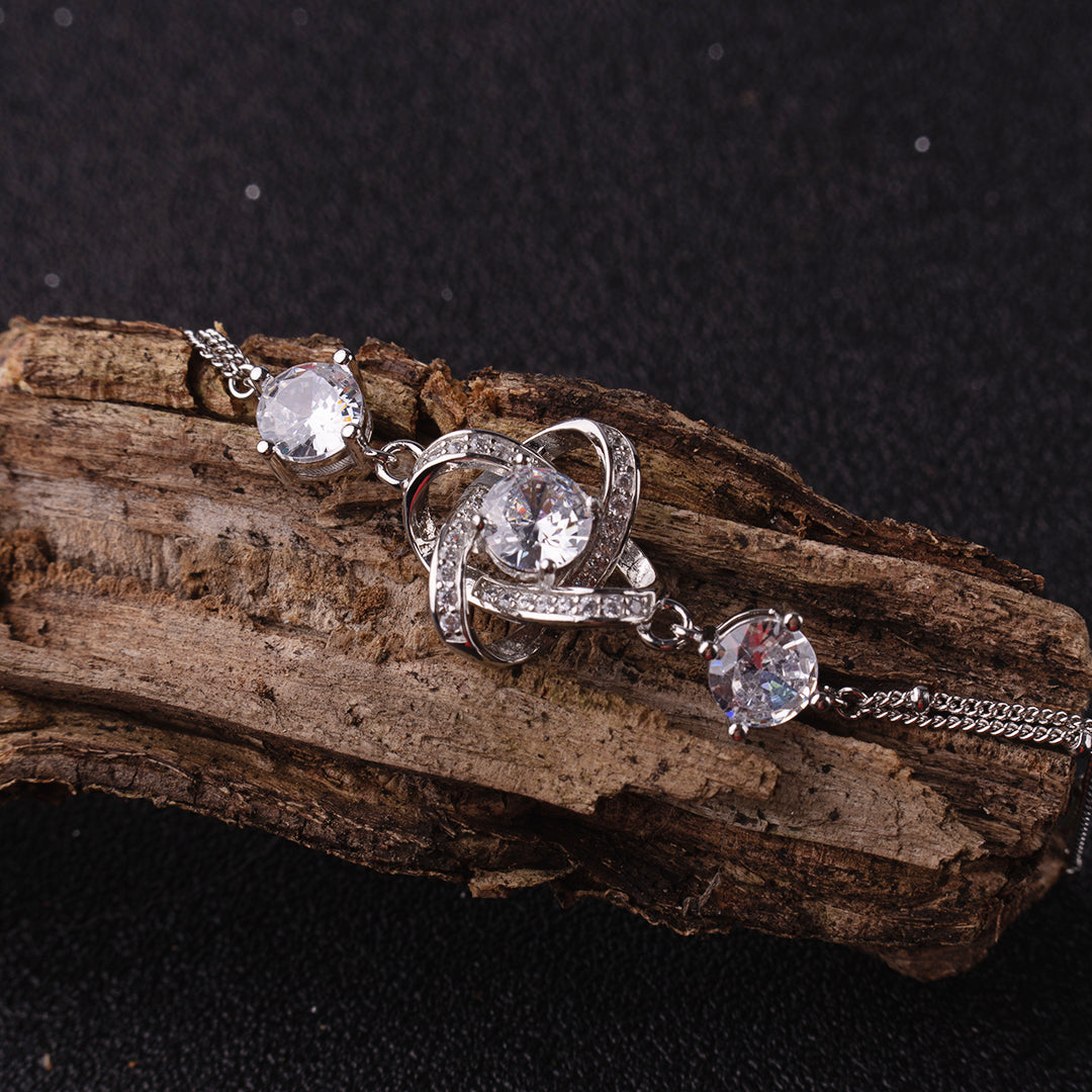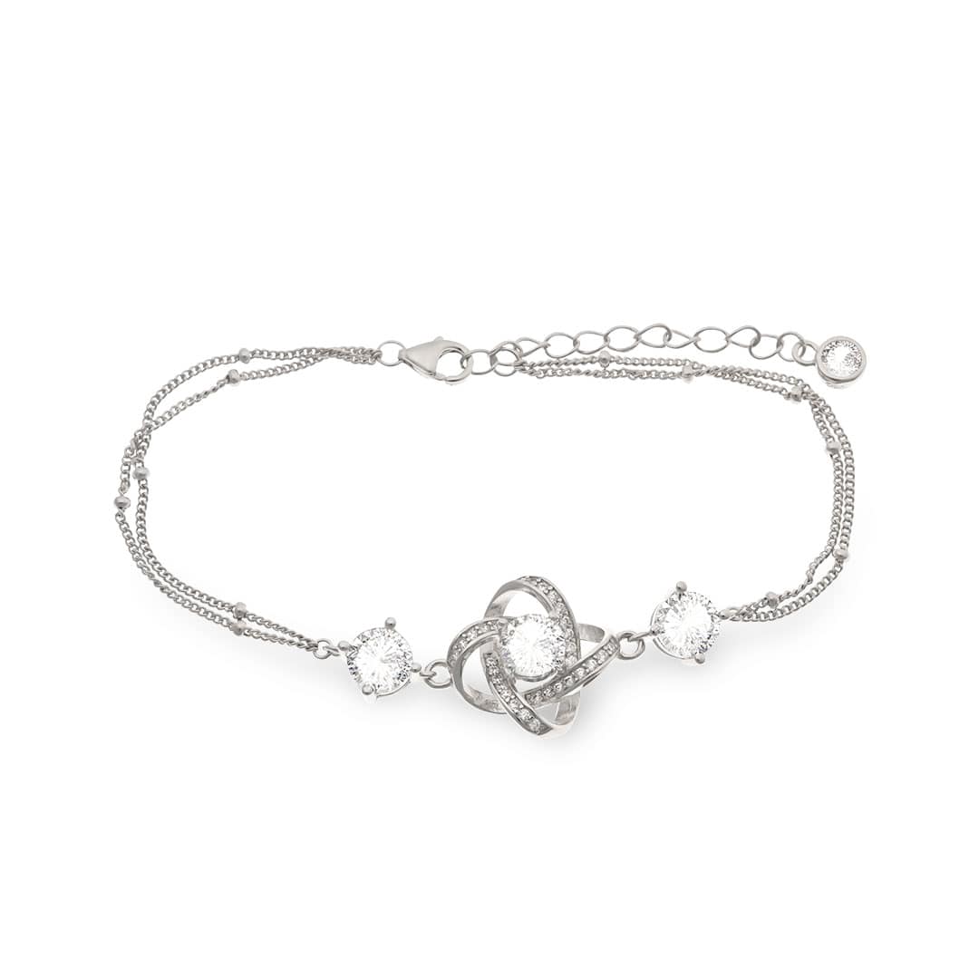 Expertly crafted from .925 sterling silver coated in radiant 18K white gold, it features natural zircon accents that twinkle like little shamrocks catching morning dew. Equally at home with a casual sweater or a dressy outfit, this bracelet makes an elegant statement of faith and fidelity.