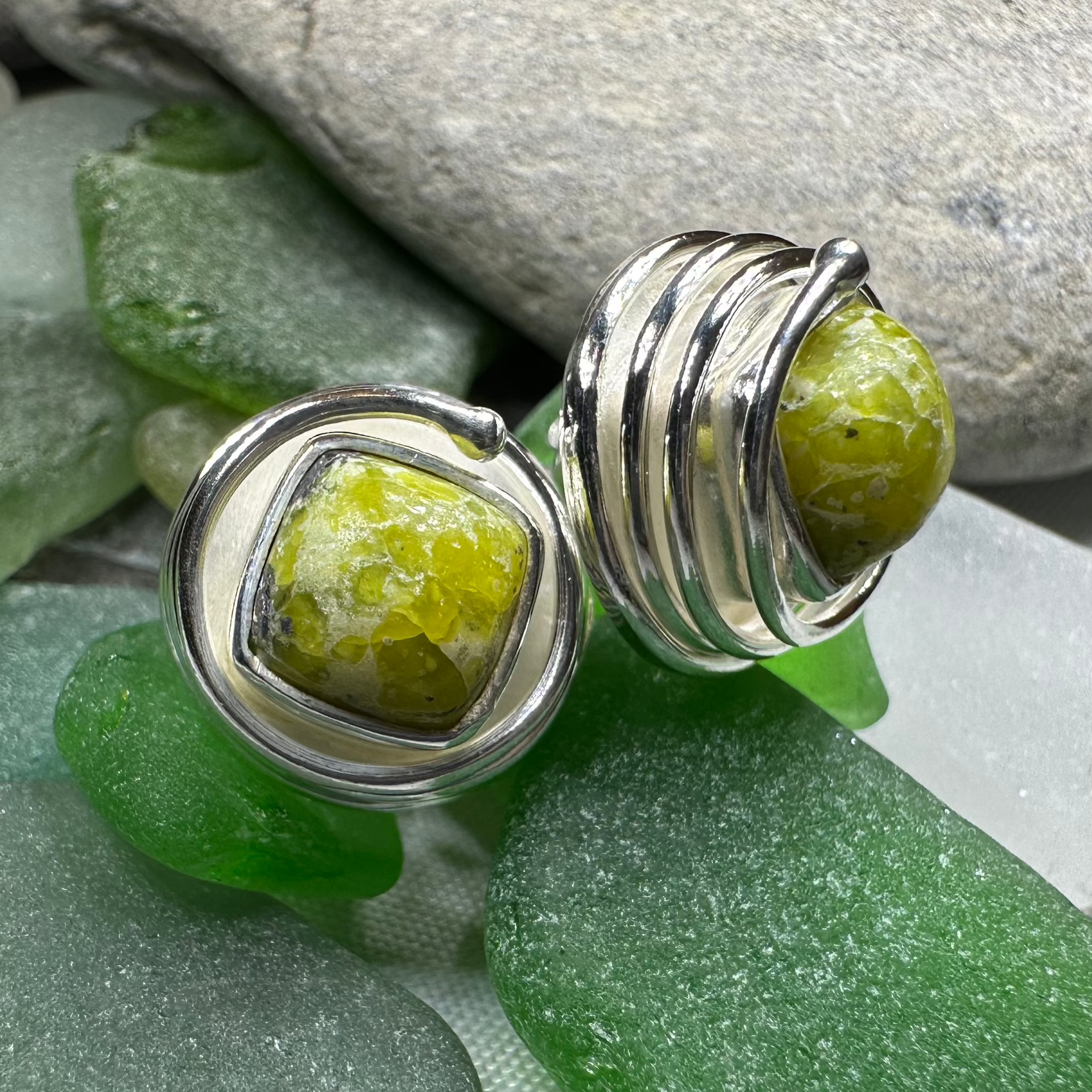 These earrings are a work of art! A one carat, authentic Connemara marble cabochon from Ireland set into sterling silver. These earrings include a post back closure for ease of wear.