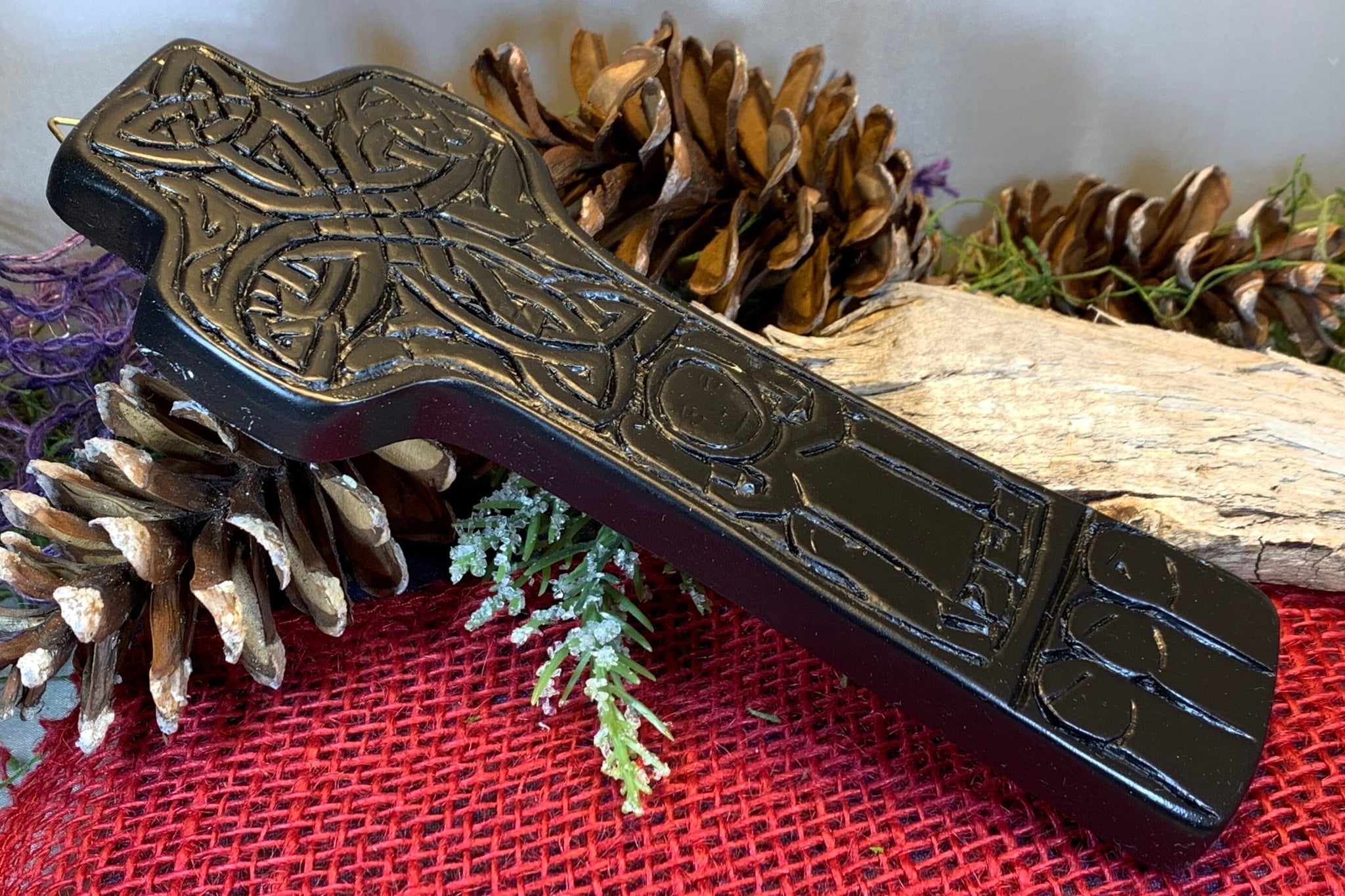 Measures 7 1/2" x 2 1/2" (with metal hanging hook at the top) with gift box and information about the history of this high cross and Irish bogs.